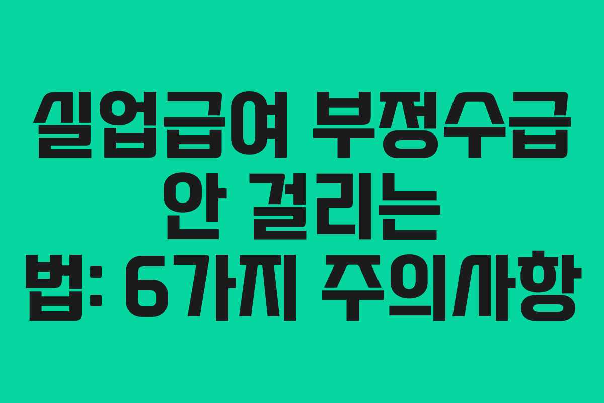 실업급여는 경제적인 어려움을 겪는 이들에게 중요한 지원이지만, 잘못된 방법으로 수급할 경우 큰 불이익을 초래할 수 있습니다. 이에 따라 부정수급을 피하기 위한 방법을 알아보겠습니다.