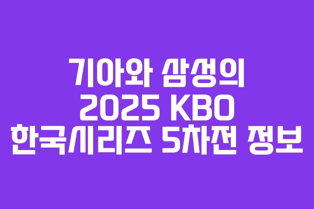 기아 타이거즈와 삼성 라이온즈의 5차전은 치열한 경쟁이 예상됩니다. 이번 경기를 놓치지 않기 위해 경기 일정과 중계 정보를 확인하고, 팀을 응원하세요!