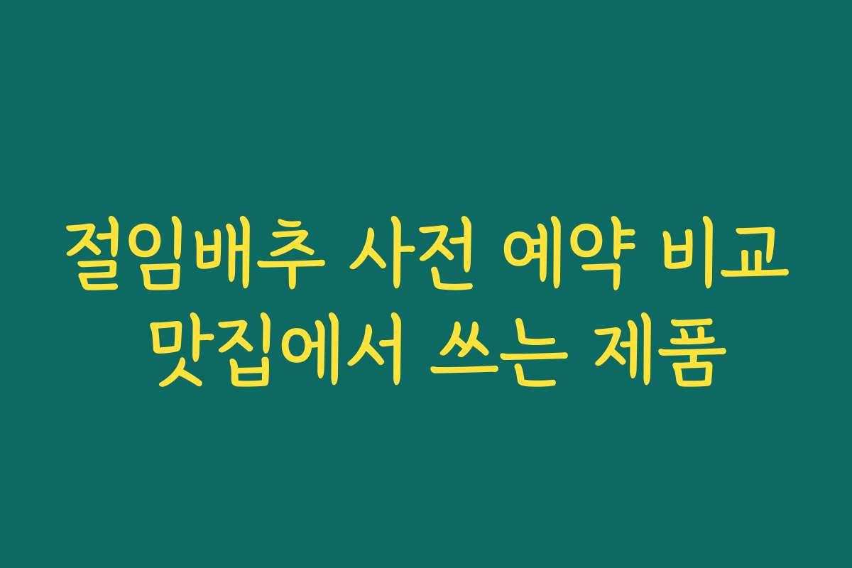혹시 이런 고민 있으신가요? 2025년 최신 정보에 따르면, 절임배추 사전 예약 비교 맛집에서 쓰는 제품에 대한 정보가 부족해 많은 분들이 어려움을 겪고 있습니다. 본 글을 통해 절임배추 사전 예약 비교 맛집에서 쓰는 제품에 대한 모든 궁금증을 해결해 드리겠습니다.