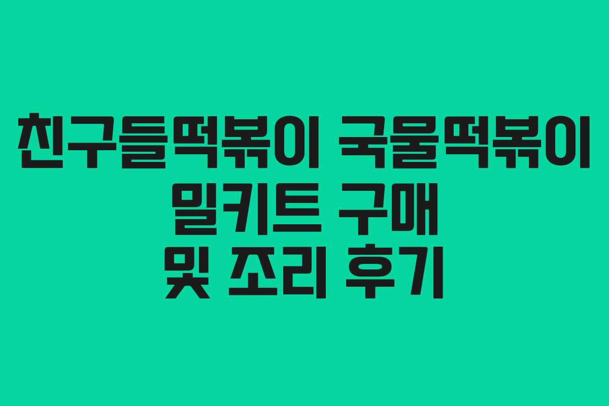 떡볶이는 많은 사람들에게 사랑받는 음식 중 하나입니다. 최근에 친구들떡볶이에서 국물떡볶이 밀키트를 구매하여 조리해본 후기를 공유합니다.
