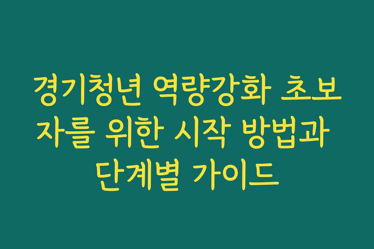 ⚡ 경기청년 역량강화 초보자를 위한 시작 방법과 단계별 가이드 똑똑하게 해결하는 방법