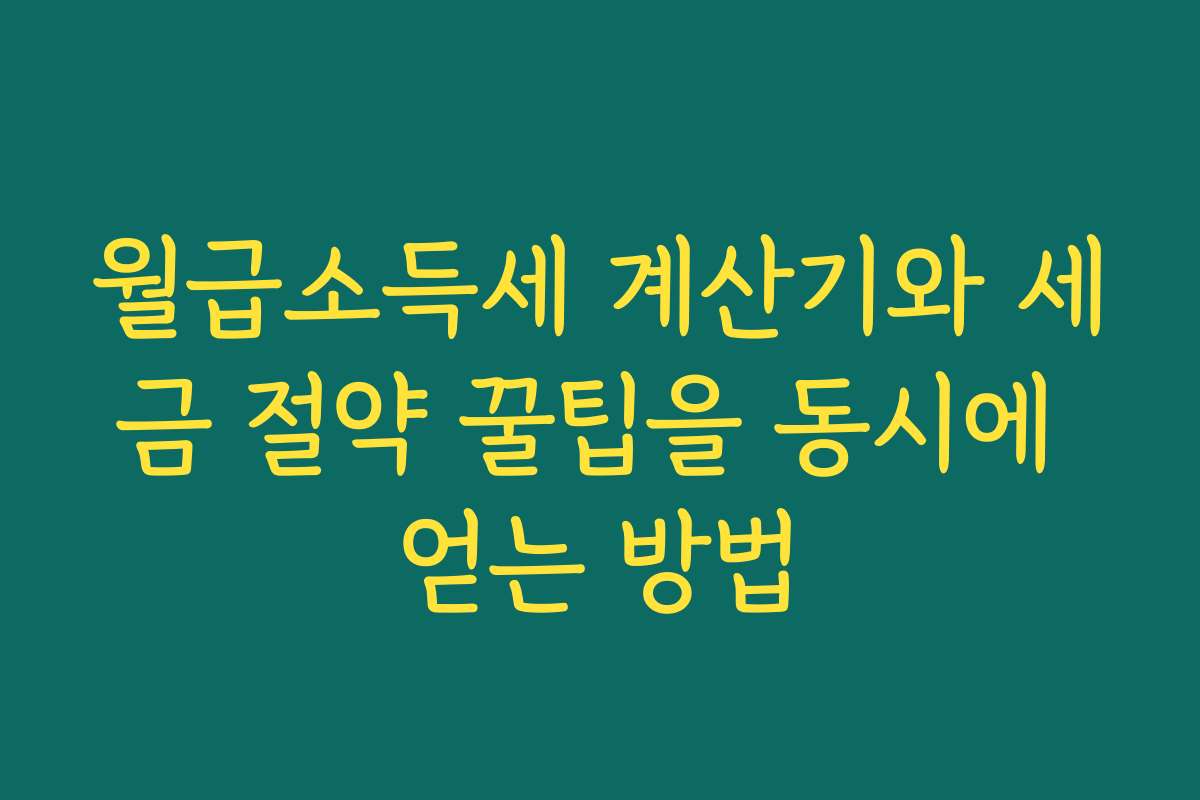 😰 월급소득세 계산기와 세금 절약 꿀팁을 동시에 얻는 방법 때문에 정말 힘드시죠?