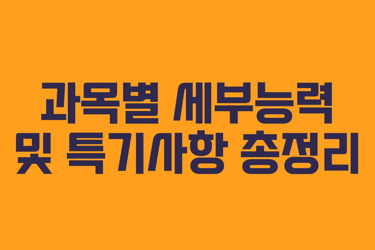이 글을 통해 과목별 세부능력 및 특기사항에 대한 이해와 작성 방법을 정리하였습니다. 교사들은 학생의 성장을 기록하며, 보다 나은 교육 환경을 조성하는 데 기여하길 바랍니다.