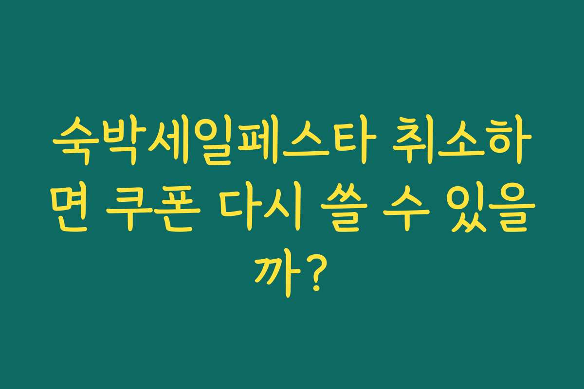 숙박세일페스타는 많은 사람들이 기다리는 이벤트입니다. 그러나 다양한 사정으로 인해 예약을 취소해야 하는 경우가 발생할 수 있습니다. 이때 가장 고민되는 것이 바로 쿠폰의 재사용 여부입니다. 쿠폰을 통해 얻은 혜택이 사라지지 않을까 걱정하는 분들이 많습니다. 실망스럽게도, 상황에 따라 쿠폰을 다시 사용할 수 있는지의 여부가 달라질 수 있습니다.