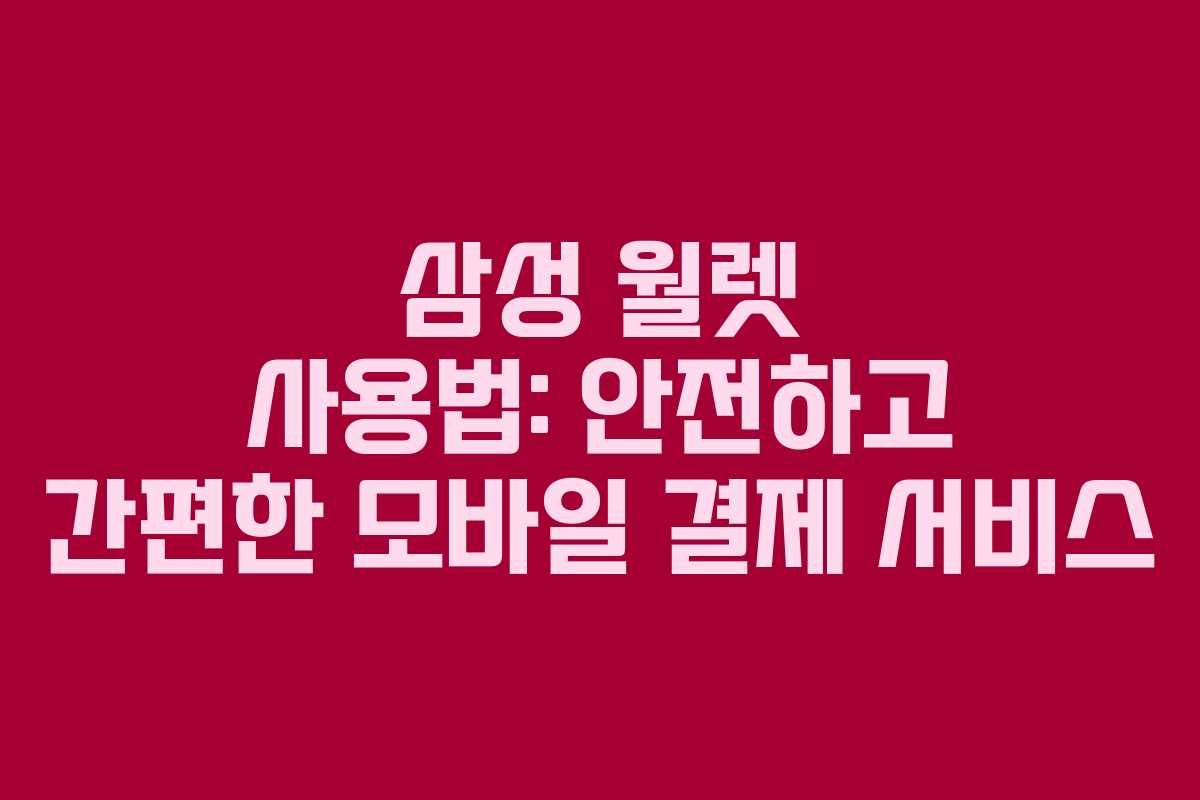 삼성 월렛은 스마트폰을 통해 안전하고 빠르게 결제할 수 있는 혁신적인 모바일 결제 서비스입니다. 이 서비스는 사용자가 비접촉식으로 결제할 수 있도록 설계되어, 현대인의 다양한 라이프스타일에 적합한 결제 경험을 제공합니다.