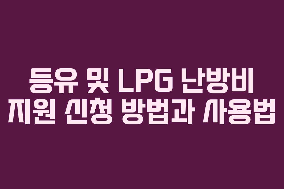 등유 및 LPG 난방비 지원 신청 방법과 사용법