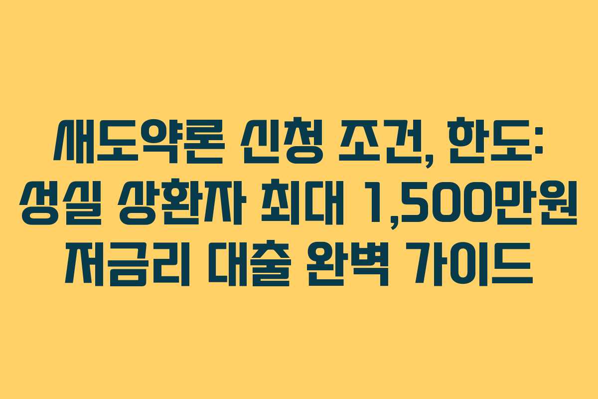 새도약론은 과거의 신용 문제로 금융 접근이 어려웠던 분들을 위한 저금리 대출 프로그램입니다. 이 제도를 통해 성실한 상환자들은 최대 1,500만원까지 연 3~4%의 금리로 대출을 받을 수 있습니다.