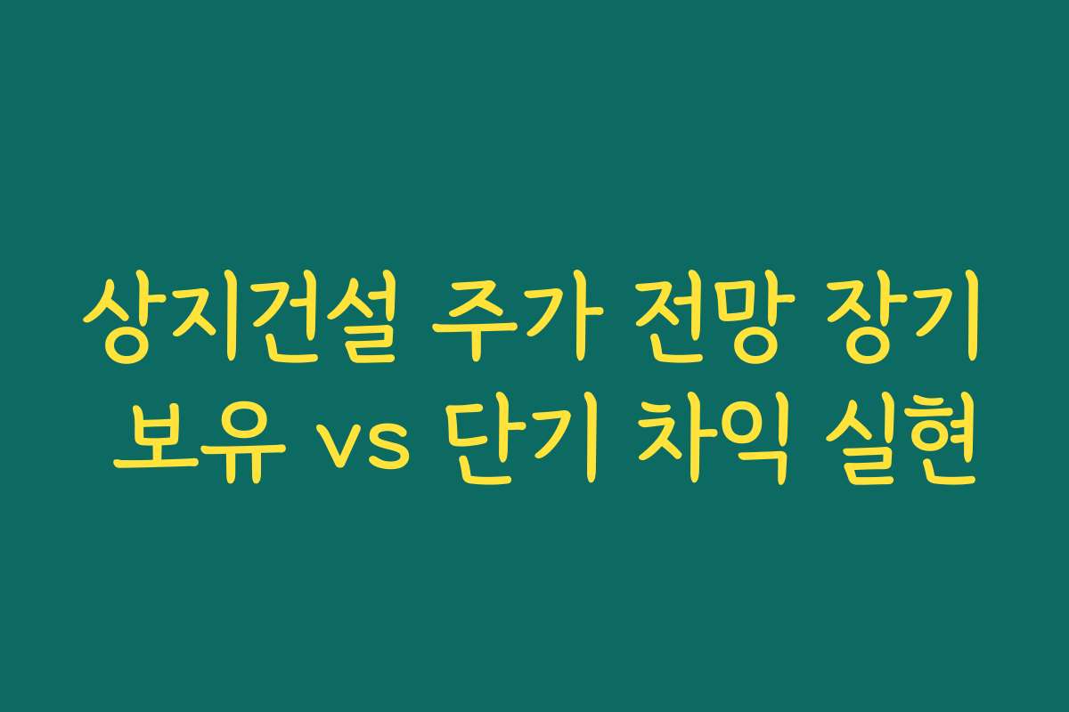 상지건설 주가 전망 장기 보유 vs 단기 차익 실현 비교