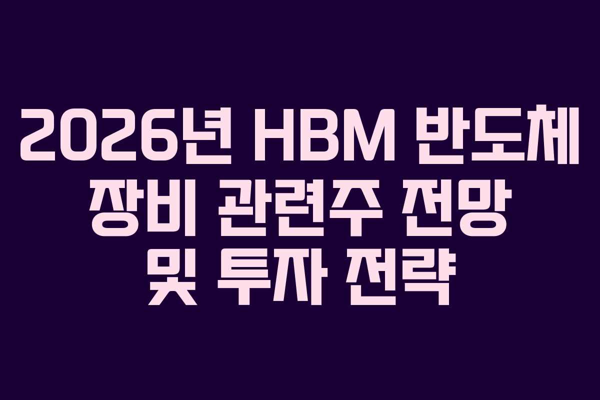 HBM 반도체 장비 관련주는 2026년에도 여전히 주목할 만한 투자처로 남을 것이다. 특히, AI 기술의 발전과 데이터 처리 수요의 증가로 인해 HBM 메모리의 필요성이 더욱 부각되고 있다. 이러한 환경 속에서 와이씨와 같은 기업들은 안정적인 성장을 이어갈 것으로 예상된다. 따라서, HBM 장비 관련주에 대한 관심을 높이고, 투자 전략을 세우는 것이 필요하다.