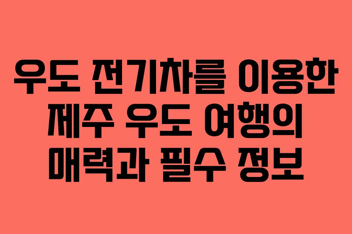 우도는 섬 속의 섬으로, 제주도의 매력을 극대화할 수 있는 여행지입니다. 전기차를 이용하면 편리하게 다양한 명소를 방문하면서 자연과 함께하는 즐거운 시간을 보낼 수 있습니다. 이제 여러분도 우도를 탐방해보세요. 아름다운 풍경과 맛있는 먹거리가 여러분을 기다리고 있습니다.