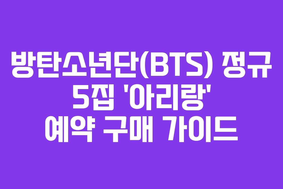 2026년 가요계에서 가장 기대되는 순간이 다가왔습니다. 방탄소년단의 정규 5집 ‘아리랑’이 예약 판매를 시작했습니다. 이번 앨범은 팬들에게 특별한 의미가 있는 완전체 컴백이기에 전 세계적으로 높은 수요가 예상됩니다. 다양한 판매처에서 제공하는 특전과 앨범 구성, 차트 반영을 위한 구매 팁을 상세히 안내드리겠습니다.