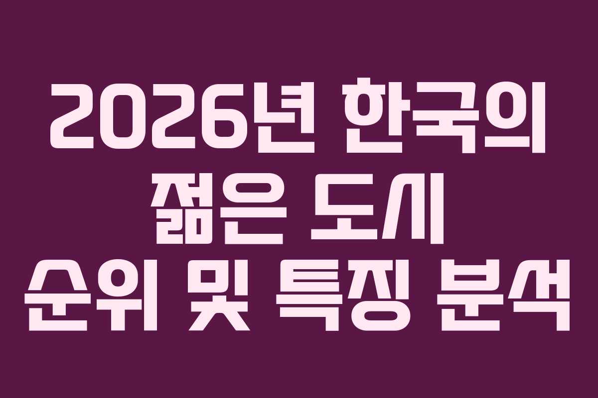 한국의 저출산 문제와 고령화가 심각하게 대두되고 있는 가운데, 젊은 인구를 유치하고 있는 도시들이 주목받고 있다. 2026년 기준으로 한국의 젊은 도시 순위를 살펴보면, 이들 도시는 젊은층의 인구가 유입되며 평균 연령이 낮은 특징을 보인다. 이번 글에서는 2026년 현재 한국의 젊은 도시 1위부터 10위까지의 특징을 살펴보도록 하겠다.