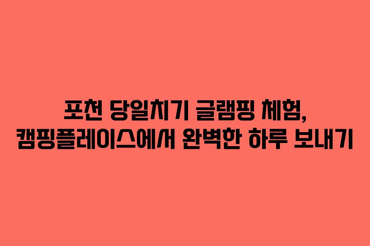 2026년 상반기, 포천에서의 당일치기 글램핑은 특별한 경험으로 다가옵니다. 캠핑플레이스에서의 하루는 자연과 함께하는 즐거운 시간이 될 것이며, 이곳의 다양한 시설과 맛있는 음식은 그 즐거움을 더욱 배가시킬 것입니다. 이번 포스팅에서는 포천에서 글램핑을 즐길 때 알아두어야 할 팁과 추천 메뉴를 소개합니다.