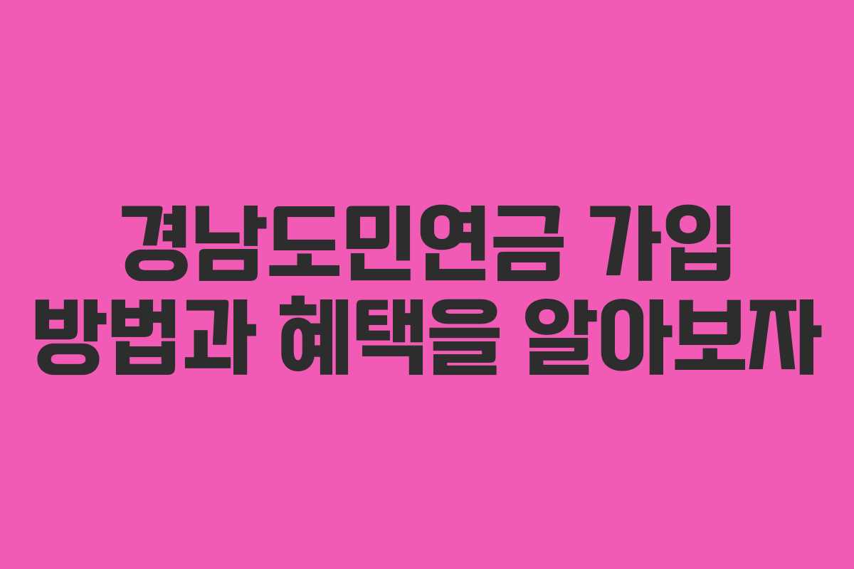 경남도민연금 가입 방법과 혜택을 알아보자