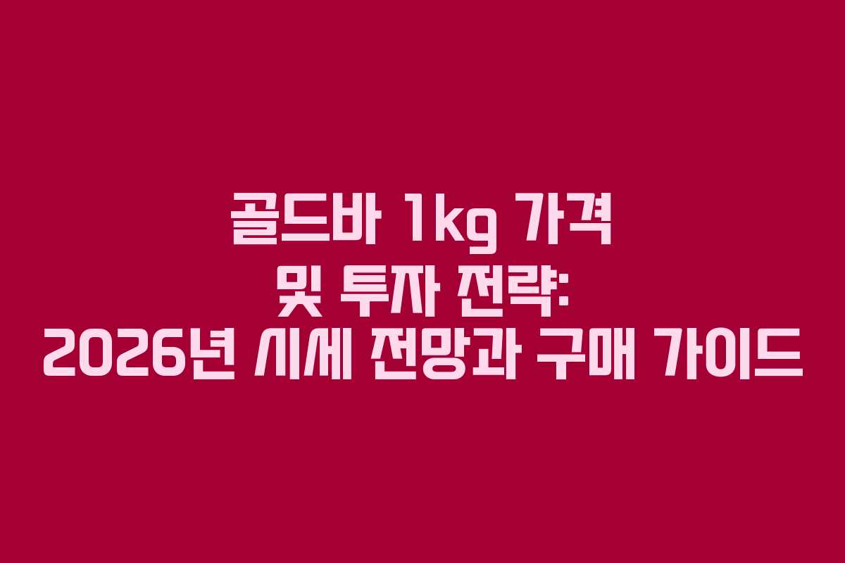 2026년의 골드바 1kg 가격은 금 시세의 변화와 함께 다양한 요인에 따라 달라질 수 있습니다. 안전 자산으로서 금의 매력은 여전하며, 올바른 투자 정보를 통해 성공적인 금 투자에 한 걸음 더 가까워질 수 있습니다. 이 글에서는 2026년 골드바 1kg 가격의 최근 동향과 투자 전략에 대해 알아보겠습니다.