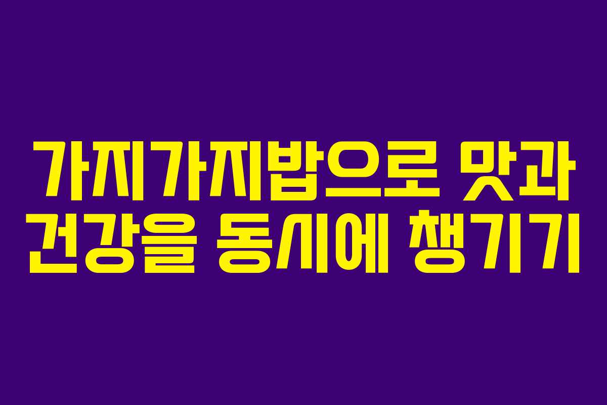 가지를 활용한 가지가지밥은 간단하지만 맛과 건강을 모두 잡을 수 있는 요리입니다. 이 요리를 통해 가족과 함께 건강한 식사를 즐기고, 맛의 조화를 경험해보세요. 가지가 주는 다양한 효능을 느끼며, 특별한 한 끼를 만들어 보시길 바랍니다.