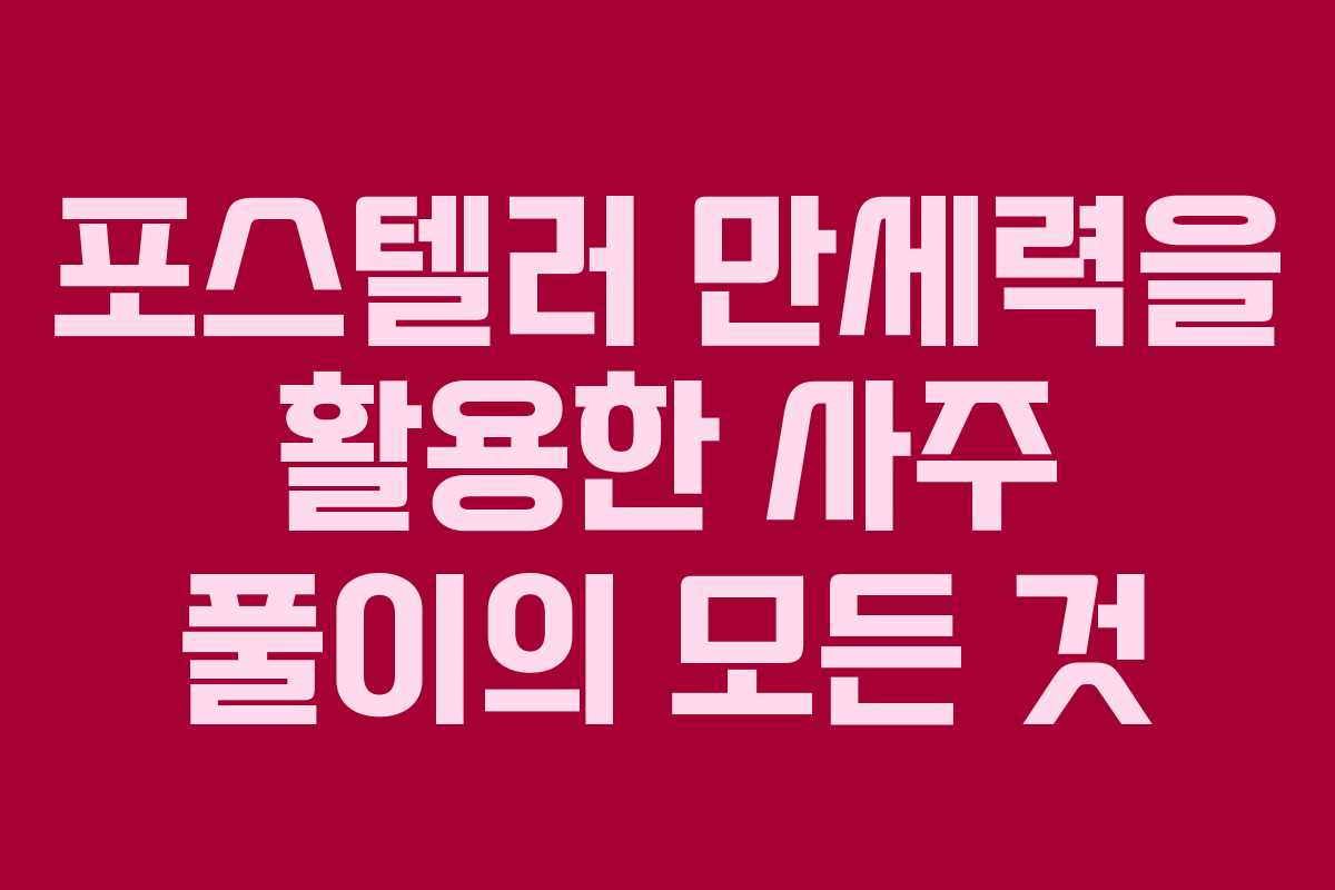 포스텔러 만세력은 자신의 운세와 성격을 이해하는 데 매우 유용한 도구입니다. 이 시스템을 통해 무료로 제공되는 한글 만세력과 사주 풀이를 활용하여 자신의 인생에 대한 통찰을 얻을 수 있습니다. 본문에서는 포스텔러 만세력을 통해 사주를 보는 방법과 그 과정에서 알아야 할 주요 내용들을 다룰 것입니다.
