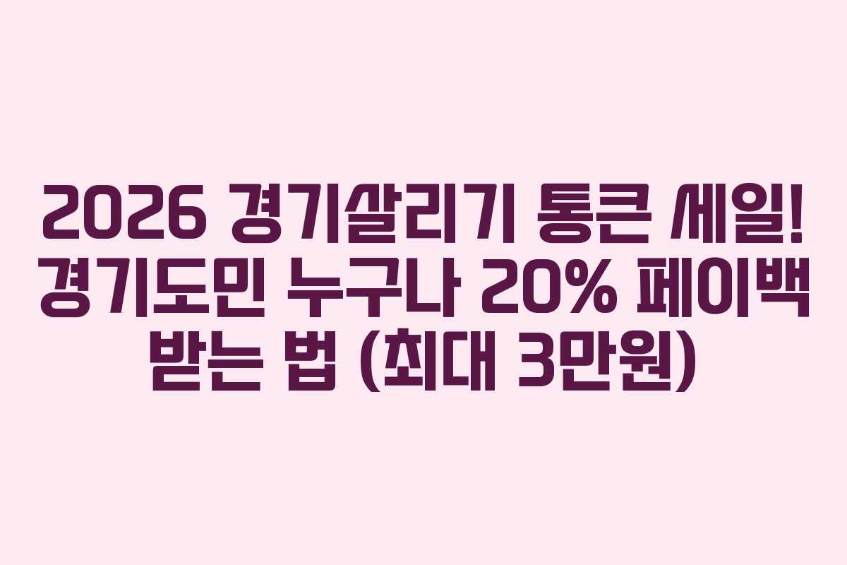 2026년, 경기도민을 위한 특별한 환급 이벤트가 시작된다. 이 행사는 지역 경제를 활성화하기 위한 방안으로, 결제 금액의 20%를 즉시 돌려주는 ‘경기살리기 통큰 세일’이다. 최대 3만 원까지 세이브할 수 있는 이번 행사에 대해 자세히 알아보자.