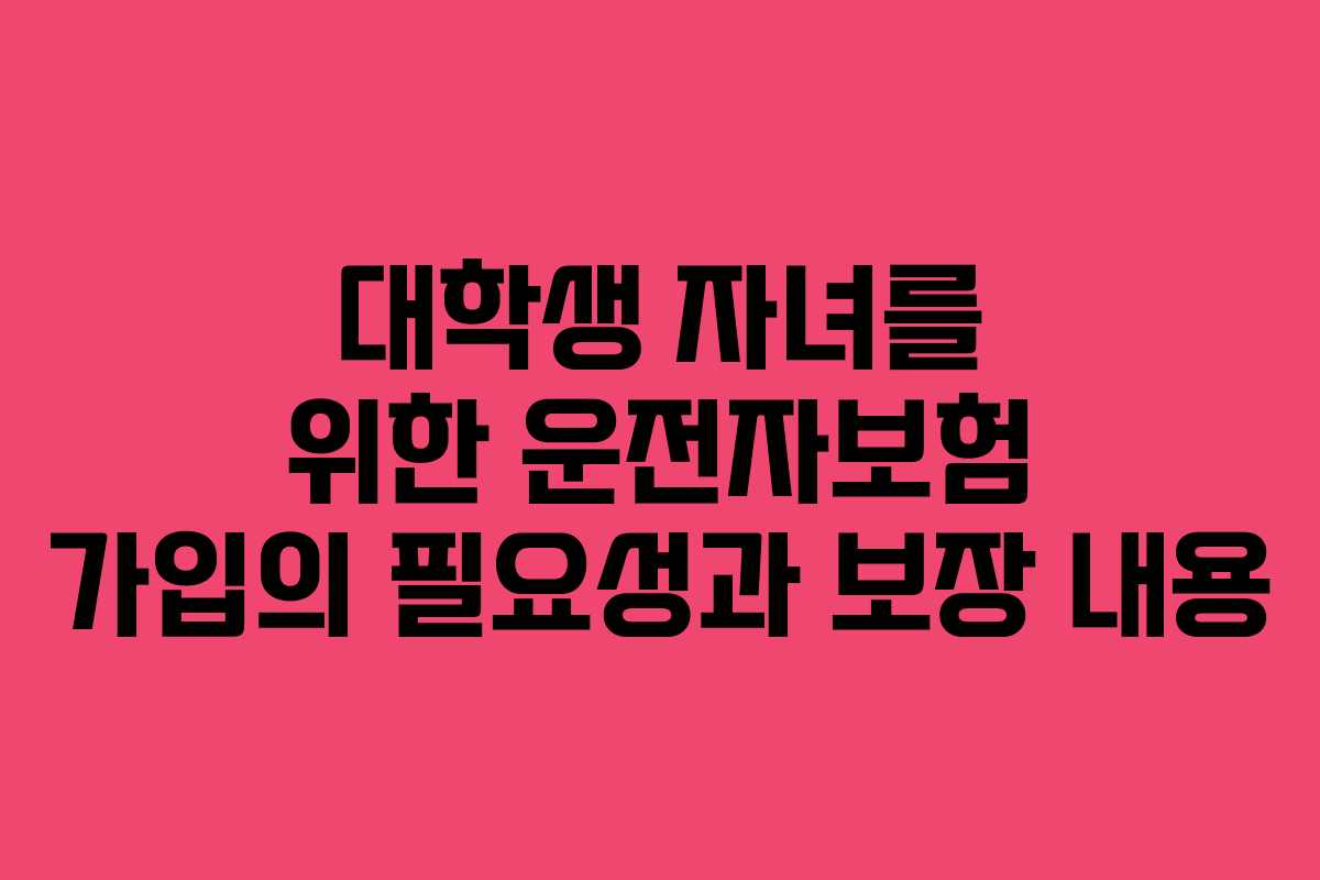 대학생 자녀가 운전하는 경우, 사고 발생 시 경제적 부담을 줄이기 위해 운전자보험이 필수적이다. 특히 중대사고의 경우 높은 합의금이 발생할 수 있으므로, 반드시 가입을 고려해야 한다.