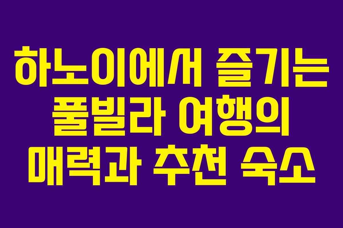 하노이는 베트남의 수도로, 풍부한 역사와 문화가 얽혀있는 도시입니다. 이곳에서 풀빌라에서의 여유로운 여행은 특별한 경험이 될 것입니다. 이번 글에서는 하노이에서 즐길 수 있는 풀빌라 여행의 모든 것과 추천 숙소를 소개합니다.