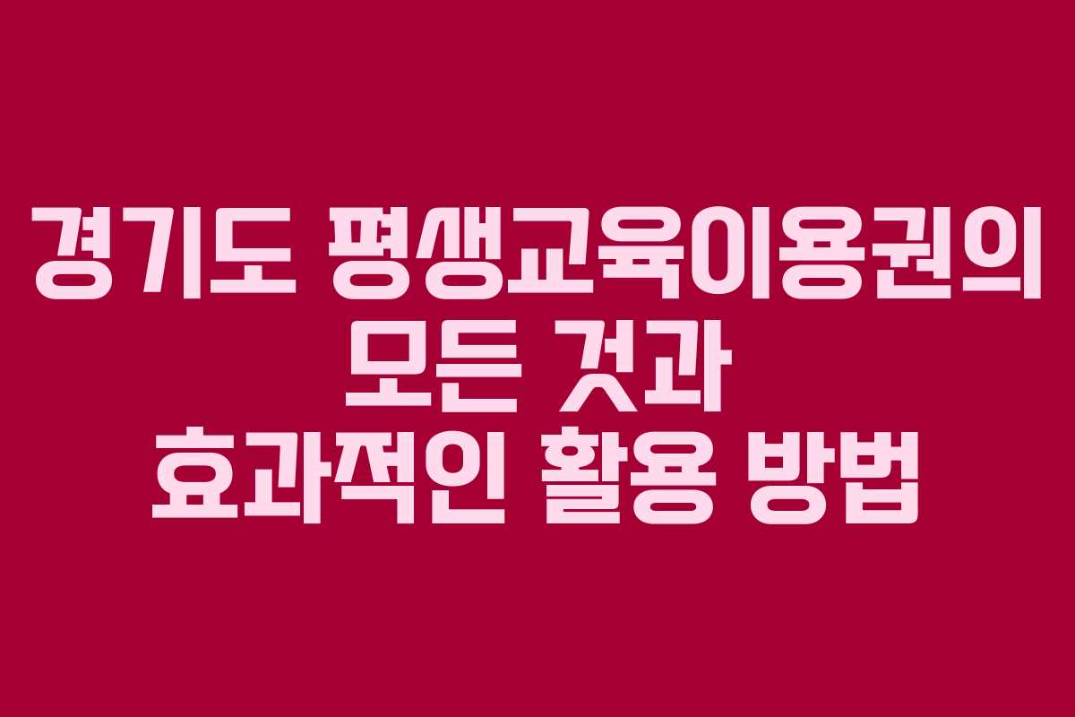 경기도 평생교육이용권은 경기도민이 평생학습을 통해 자기 발전을 도모할 수 있도록 지원하는 제도입니다. 이 글에서는 평생교육이용권의 신청 방법과 활용법을 자세히 알아보겠습니다. 경기도민이라면 이 기회를 통해 다양한 학습 기회를 놓치지 않기를 바랍니다.
