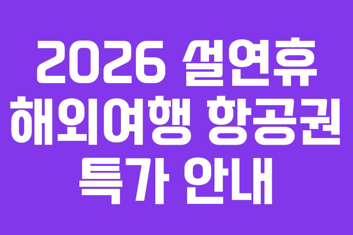 2026 설연휴 해외여행 항공권 예약 팁