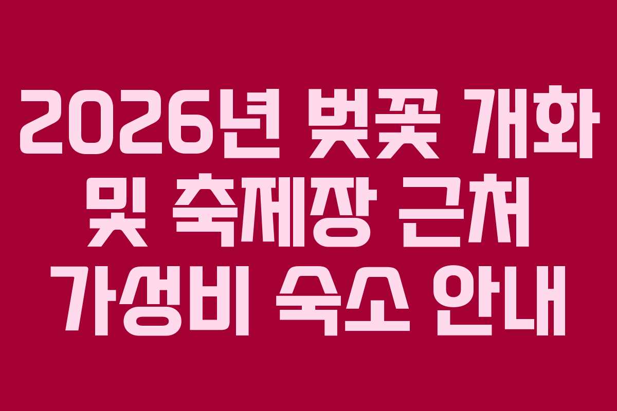 2026년 벚꽃 개화 및 축제장 근처 가성비 숙소 안내