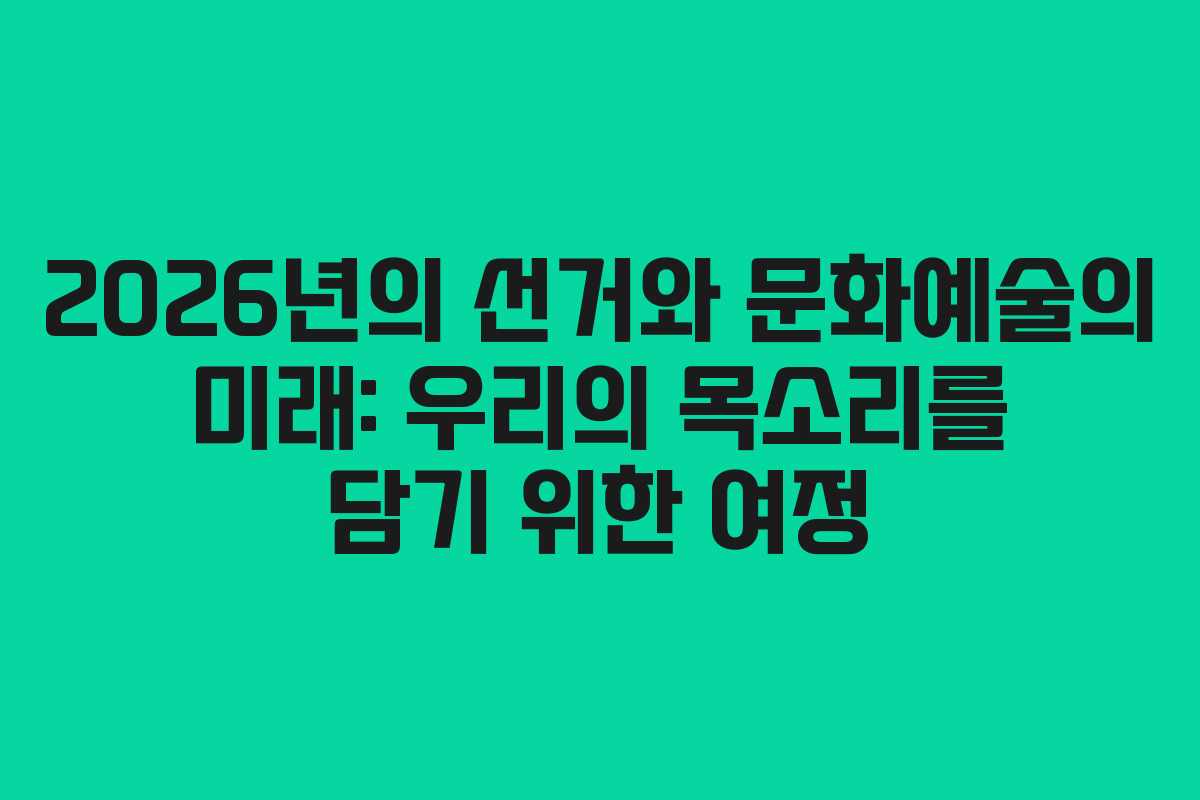 2026년의 선거는 단순히 정치적 변화에 그치지 않고, 사회 전반에 걸쳐 다양한 목소리를 담아내는 중요한 기회로 여겨진다. 특히 문화예술 분야에서는 지역 주민들의 의견과 요구가 더욱 중요해지고 있다. 문화는 단순한 소비의 대상이 아니라, 사람들의 삶과 감정을 담아내는 중요한 요소로 작용하고 있으며, 이는 선거 과정에서도 마찬가지이다. 따라서 문화예술인들이 선거에 참여하고 자신의 목소리를 내는 것은 필수적이다.