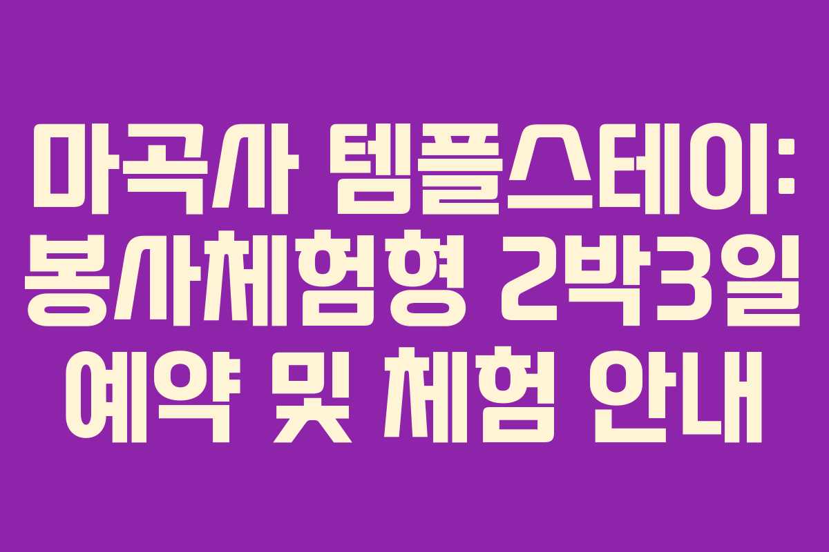 템플스테이는 기본적으로 절에서 머무르며 수행이나 봉사, 문화 체험 등을 할 수 있는 프로그램입니다. 이 프로그램은 종교적인 신념 없이도 누구나 참여할 수 있으며, 다양한 형태로 제공됩니다. 일반적으로 1박 2일 또는 그 이상의 기간 동안 참여할 수 있고, 프로그램의 내용은 사찰마다 다릅니다. 마곡사 역시 이러한 템플스테이를 제공하는 곳으로, 다양한 프로그램 중에서 자신에게 맞는 것을 선택할 수 있습니다.