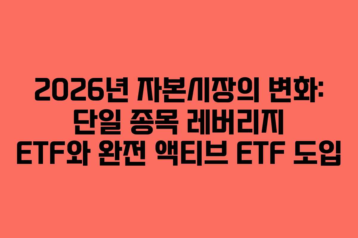 2026년 자본시장에서는 금융위원회의 법적 근거 마련을 통해 단일 종목 레버리지 ETF와 완전 액티브 ETF가 도입됩니다. 이는 해외로 유출된 자금을 다시 국내 증시로 유도하고 환율 안정을 도모하려는 정부의 전략적 노력입니다. 이번 변화를 통해 투자자 보호 장치와 1사 1상품 원칙의 한계점도 함께 살펴보겠습니다.