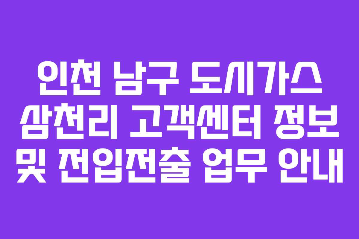 인천 남구에 거주하면서 도시가스를 이용하는 분들에게 필요한 정보는 다양합니다. 특히 이사나 전입·전출을 고려할 때는 도시가스와 관련된 절차를 잘 이해하고 있어야 합니다. 본 글에서는 인천 남구를 관할하는 삼천리 동인천 고객센터의 위치, 전화번호, 영업시간, 요금 조회 방법 등을 자세히 안내합니다.