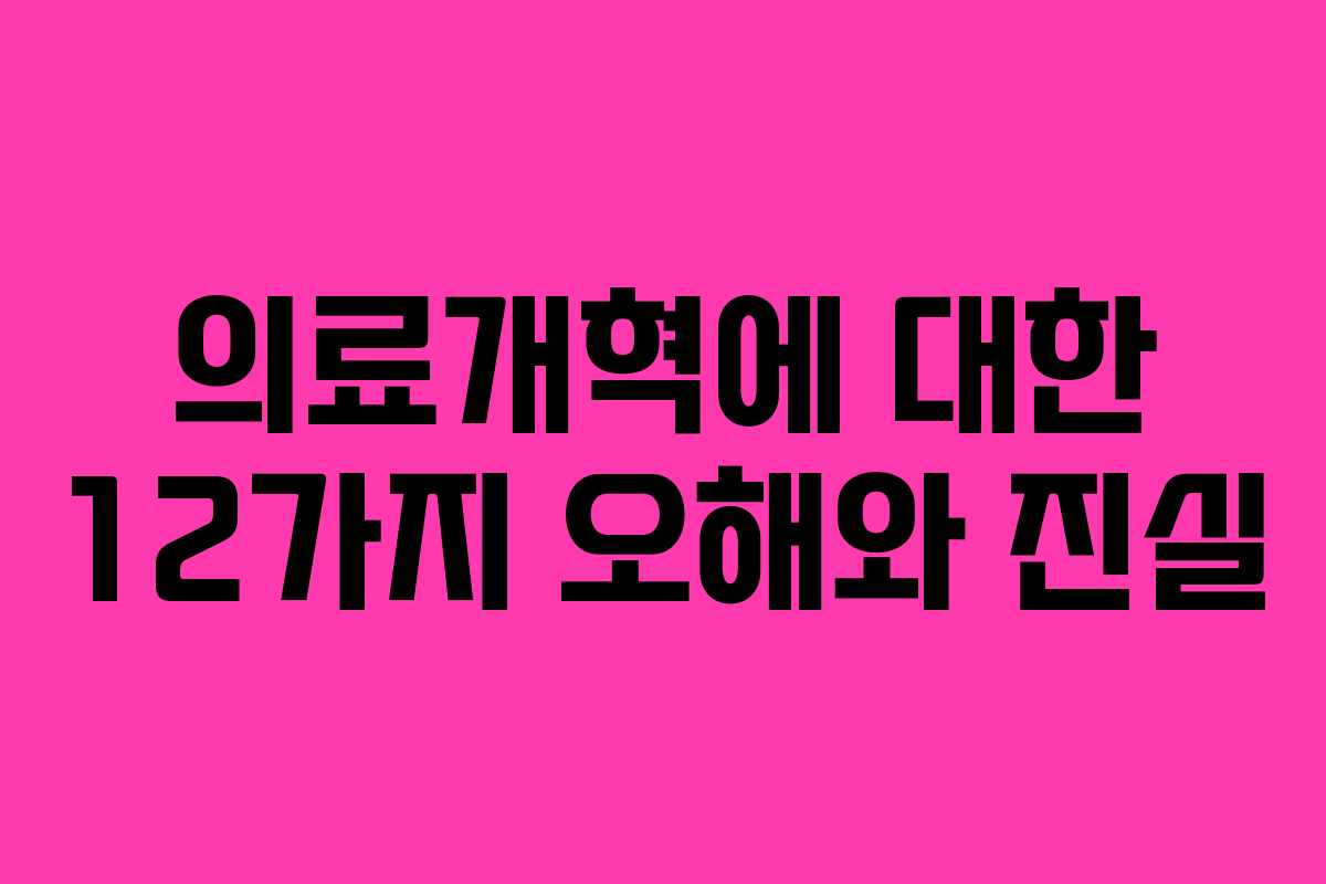 한국 의료계에서 제기되는 여러 가지 오해들은 의료개혁의 필요성과 방향성을 흐리게 만들고 있습니다. 의료현장에서의 현실적인 상황을 바탕으로 이러한 오해들을 바로잡고, 진실을 명확히 하는 것이 중요합니다. 본 글에서는 의료개혁과 관련된 12가지 오해를 정리하고, 이에 대한 진실을 살펴보겠습니다.