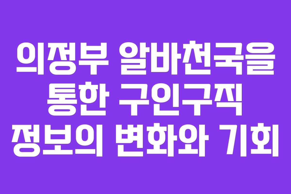 의정부시는 최근 몇 년 동안 눈에 띄는 발전을 이루며 구직자와 구인자를 위한 다양한 기회를 제공하고 있습니다. 특히 의정부 알바천국은 이러한 변화에 발맞춰 구인구직 정보를 다양하게 제공하고 있어 많은 사람들에게 도움이 되고 있습니다. 이 글에서는 의정부 알바천국의 현황과 구체적인 구인구직 정보, 그리고 이 플랫폼이 제공하는 장점에 대해 알아보겠습니다.