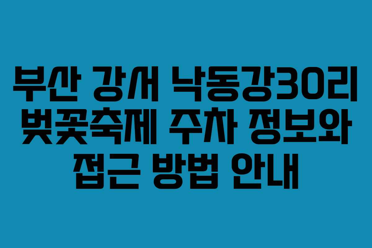 부산의 봄을 대표하는 강서 낙동강30리 벚꽃축제가 다가오면서 많은 이들이 기대에 부풀어 있습니다. 이 축제는 대저생태공원 주변의 아름다운 벚꽃길로 유명한데요. 그러나 매년 많은 인파가 몰리기 때문에 주차 문제는 항상 고민거리입니다. 이번에는 2026년 기준으로 주차 정보와 대중교통 이용 방법을 정리해보았습니다.
