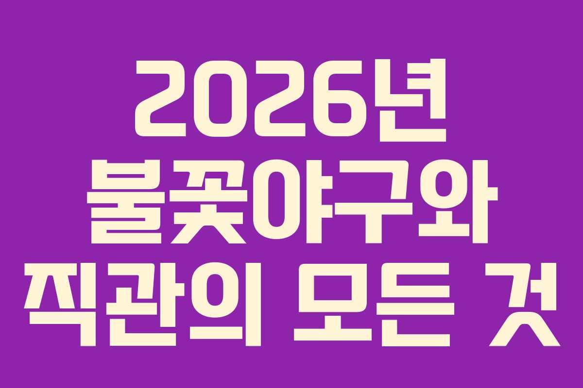 2026년에도 여전히 많은 이들의 사랑을 받고 있는 불꽃야구가 다시 찾아옵니다. 이 특별한 시즌은 스포츠와 예능의 경계를 허물며 관객들에게 새로운 경험을 선사하고 있습니다. 이번 글에서는 2026년 불꽃야구의 경기 일정, 예매 방법, 응원 문화 등 다양한 정보를 한눈에 살펴보겠습니다.