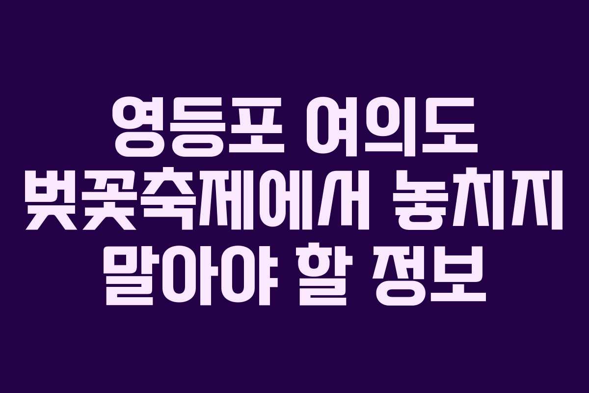 봄이 다가오면서 많은 이들이 기다리는 벚꽃 시즌이 본격적으로 시작됩니다. 특히 서울의 영등포 여의도에서 열리는 윤중로 벚꽃축제는 매년 수많은 인파가 몰리는 인기 행사입니다. 이번 글에서는 2026년 영등포 여의도 벚꽃축제에 대한 정보와 함께, 방문 시 유용한 팁들을 정리해보았습니다.