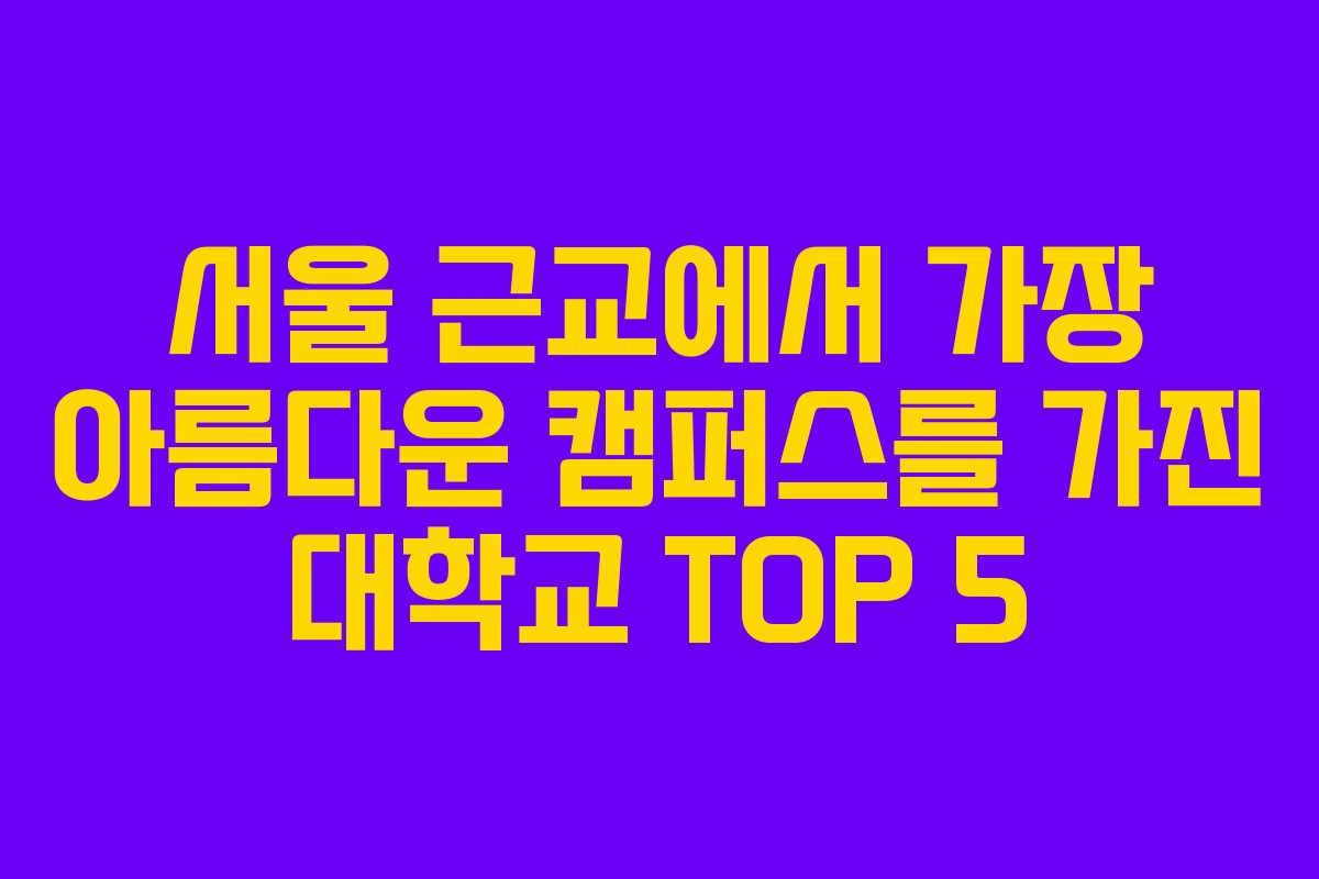 서울 및 수도권 지역에는 뛰어난 학문적 역량뿐만 아니라 아름다운 캠퍼스를 자랑하는 대학들이 많이 존재합니다. 이들 캠퍼스는 각 계절마다 다양한 매력을 발산하여 학업 외에도 산책이나 나들이 장소로 적합합니다. 최근에는 인스타그램 포토존으로도 인기를 끌며 많은 이들의 사랑을 받고 있습니다. 이번 글에서는 서울 근교에서 접근성이 좋으며 풍경이 아름다운 대학교 다섯 곳을 소개합니다. 직접 방문하거나 사진으로 감상하기에도 좋은 공간들입니다.