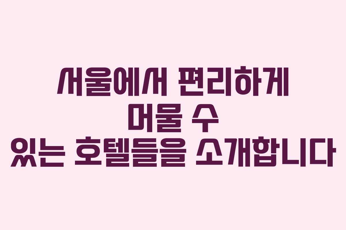 서울에서 편리하게 머물 수 있는 호텔들을 소개합니다