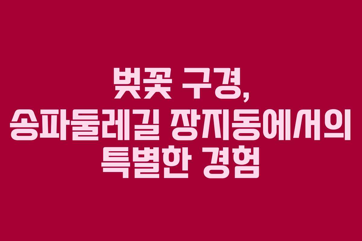 봄이 오면 벚꽃이 피어나고, 많은 이들이 이 아름다움을 만끽하기 위해 나서게 됩니다. 특히 송파둘레길의 장지동 벚꽃길은 그 화려한 경관으로 많은 이들의 사랑을 받고 있습니다. 이번 포스팅에서는 송파둘레길 장지동 벚꽃길의 매력을 살펴보고, 추천하는 이유와 함께 방문 시 놓치지 말아야 할 포인트를 안내하겠습니다.