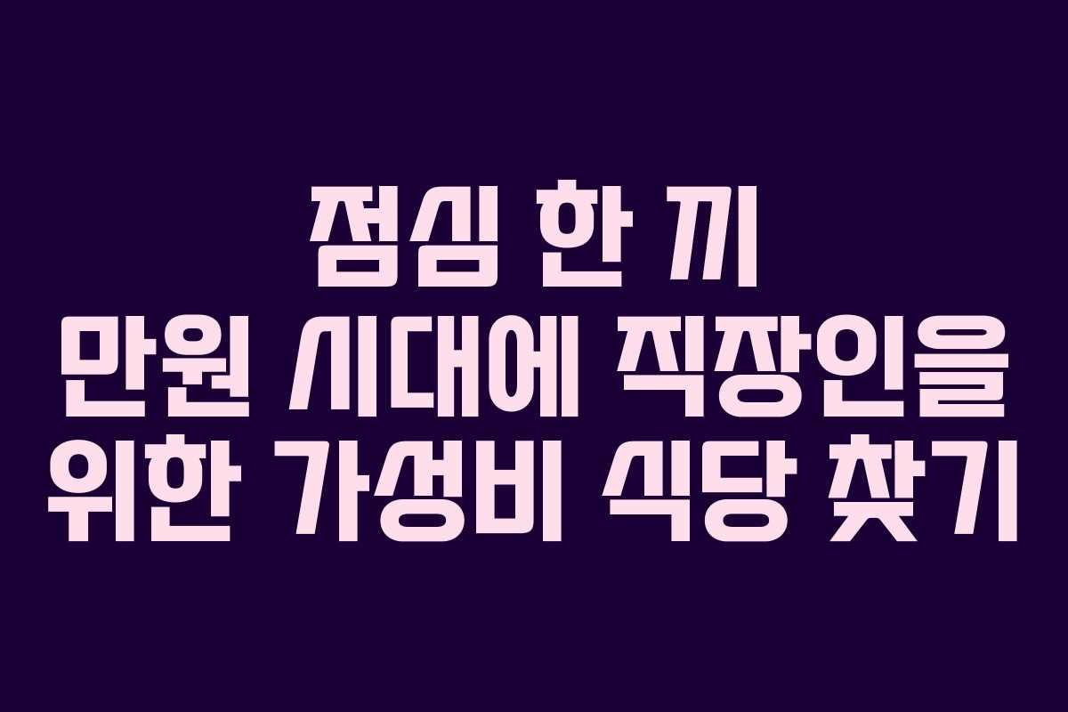 가성비 좋은 식당을 찾기 위해서는 골목길을 활용하고, 출근 전에 미리 조사하여 선택의 폭을 줄이는 것이 효과적입니다. 착한가격업소와의 조합도 좋은 방법입니다.
