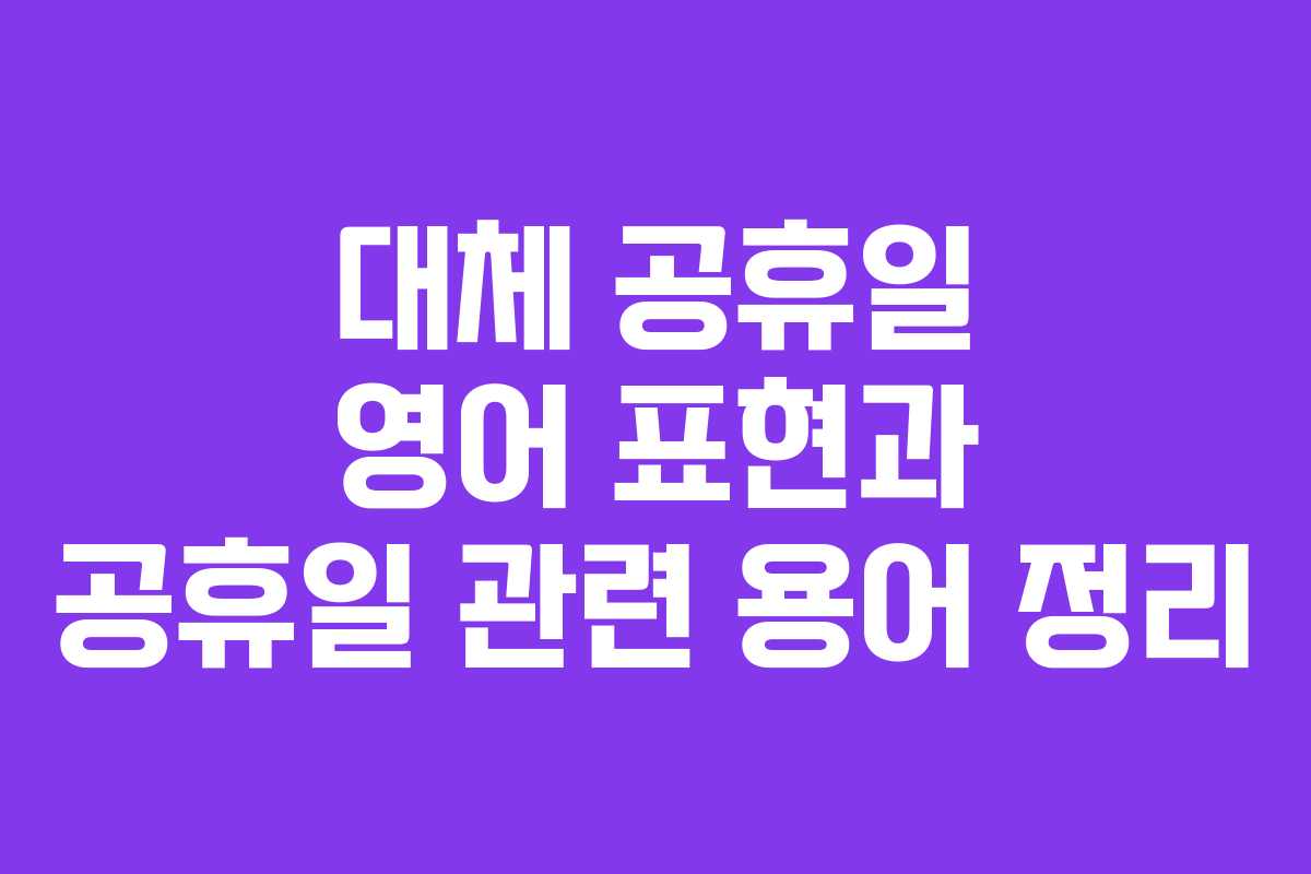 대체 공휴일과 공휴일에 대한 영어 표현을 알아보는 것은 영어 회화와 작문에서 매우 유용할 수 있습니다. 특히 많은 분들이 공휴일에 관한 표현을 자주 사용하므로, 이번 포스팅에서 대체 공휴일을 포함한 다양한 공휴일 관련 영어 표현을 정리해보겠습니다.