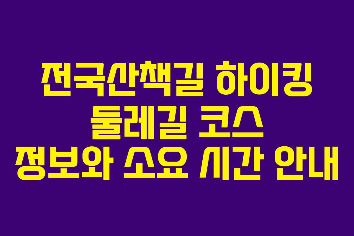 전국의 둘레길 코스는 각 지역의 특색을 살리며 다양한 경로와 난이도로 구성되어 있습니다. 각 코스별 소요 시간과 거리를 미리 파악하여 자신에게 맞는 코스를 선택하는 것이 중요합니다. 아래는 몇 가지 대표적인 코스와 그에 따른 소요 시간, 거리 정보입니다.