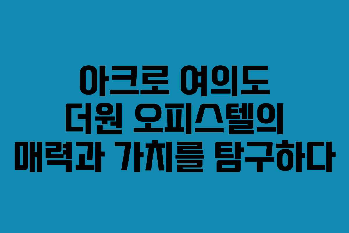 🤔 아크로 여의도 더원 오피스텔에 대한 궁금증 (FAQ)