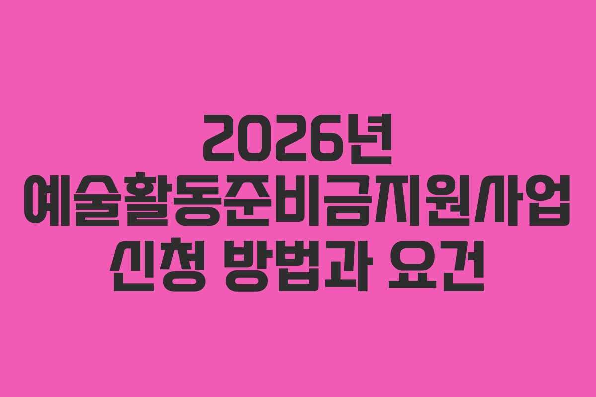 2026년 예술활동준비금지원사업 신청 방법과 요건