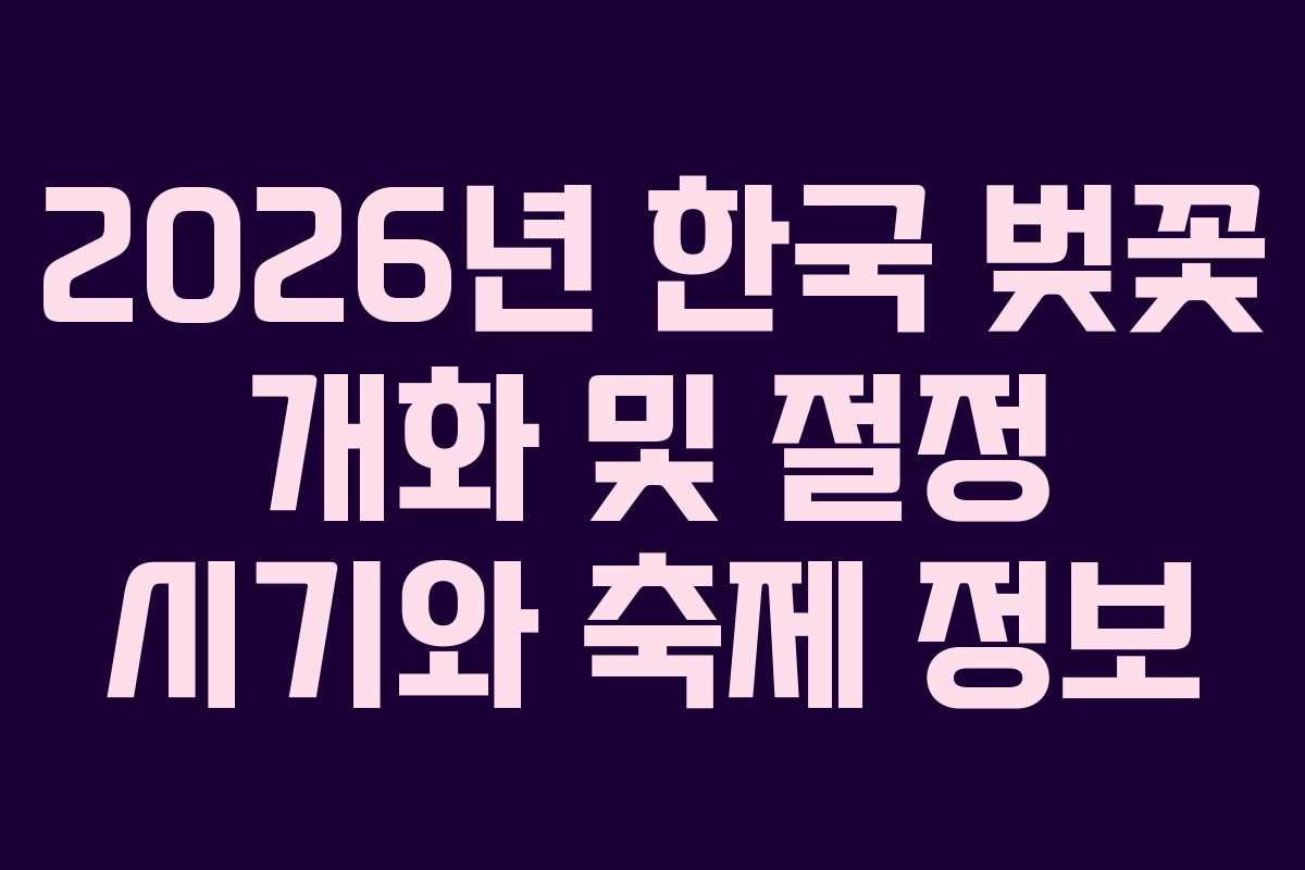 2026년 봄, 한국의 벚꽃 시즌이 다가오고 있습니다. 이 시기가 되면 많은 이들이 벚꽃을 즐기기 위해 나들이를 계획하게 되는데, 이번에는 2026년 한국 벚꽃의 개화 시기와 절정 시기, 그리고 관련 축제 정보를 자세히 알아보겠습니다.