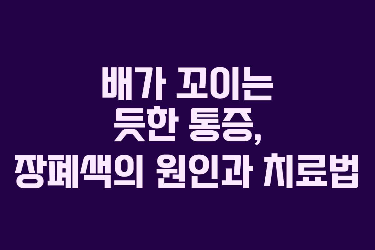 장폐색의 주요 증상으로는 극심한 복통, 구토, 복부 팽만, 대변 및 방귀 중단 등이 있습니다. 이러한 증상이 나타나면 즉시 병원을 방문해야 합니다.