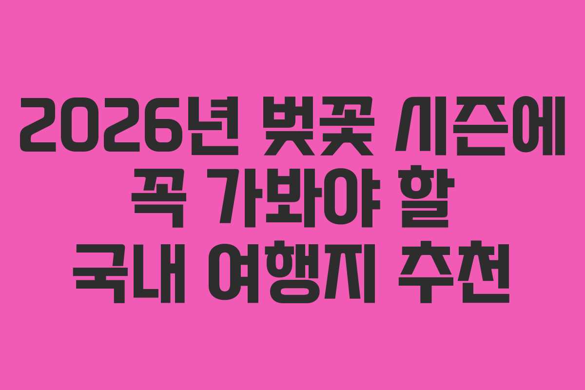 2026년 벚꽃 시즌을 위한 여행 계획 가이드