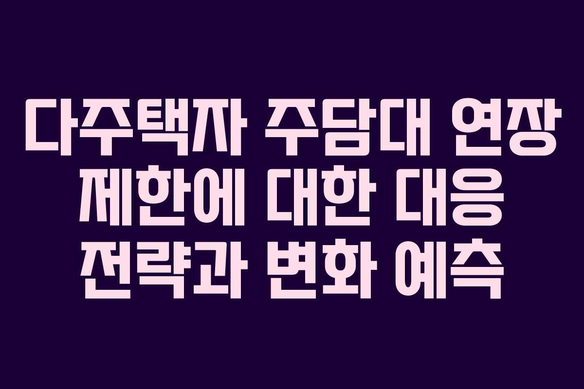 다주택자를 위한 주담대 연장 제한 대응 전략