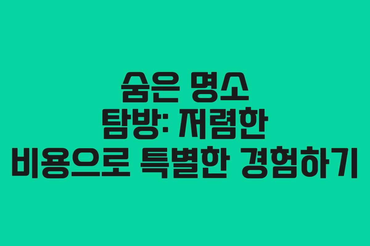 이처럼 다양한 지역의 숨은 명소들을 통해 저렴한 비용으로도 특별한 경험을 할 수 있습니다. 각 지역의 조용하고 아름다운 장소들을 발견하여, 진정한 힐링과 감동의 시간을 만끽해보시기 바랍니다.