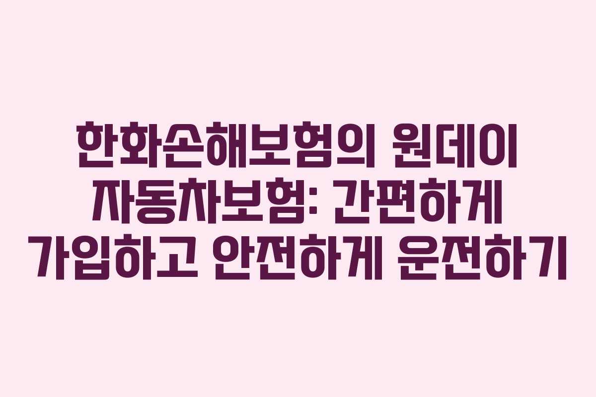 한화손해보험 원데이 자동차보험의 간편한 가입 절차와 장점